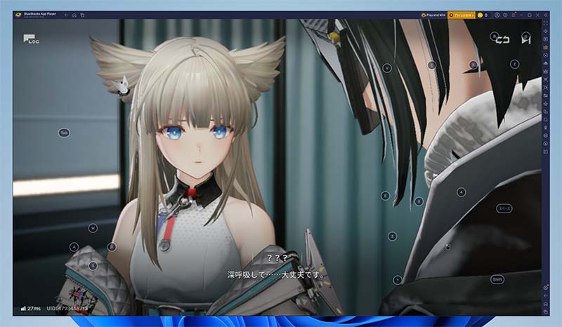 スマホゲームをPCで遊ぶときは、キーボードとマウスで操作することになります。普通のPCゲームと同じ感覚ですね。