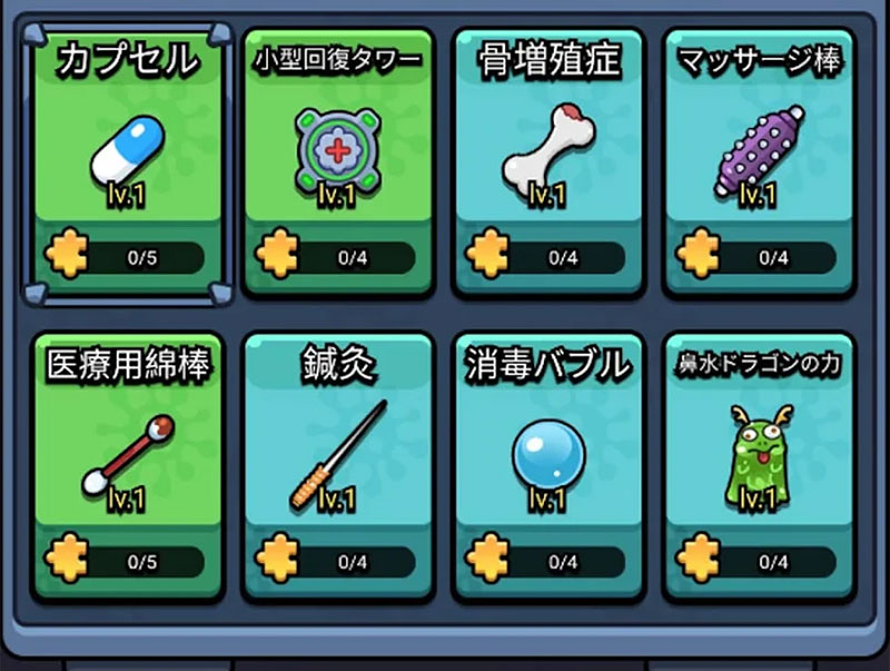 セルサバイバーには、豊富なスキルとアップグレードシステムが用意されています。