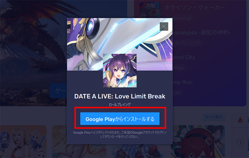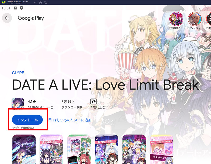 BlueStacks PCにDATE A LIVE: Love Limit Breakを入れよう