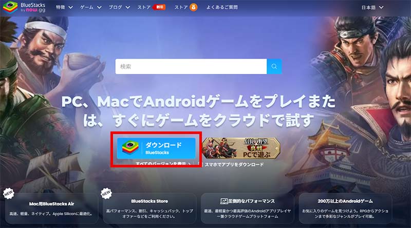 BlueStacks PCのダウンロードとインストール