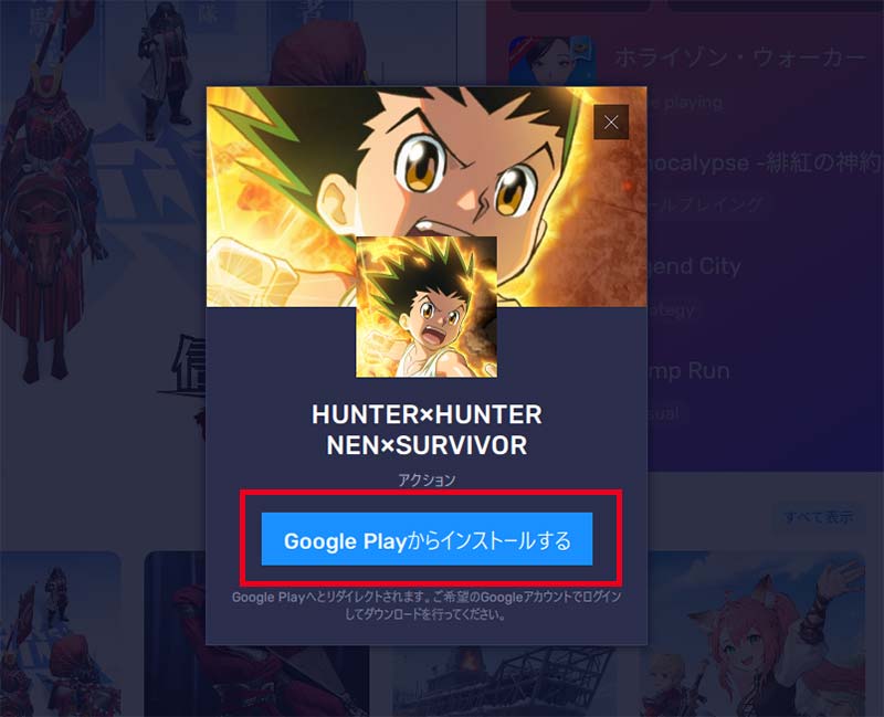 LDPlayer PCも無料で使えて、Google PlayからHUNTER×HUNTER ハンターハンターネンサバを入れて遊べます。