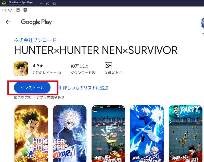 BlueStacks PCの準備ができたら、いよいよHUNTER×HUNTER ネンサバをインストールしていきます。