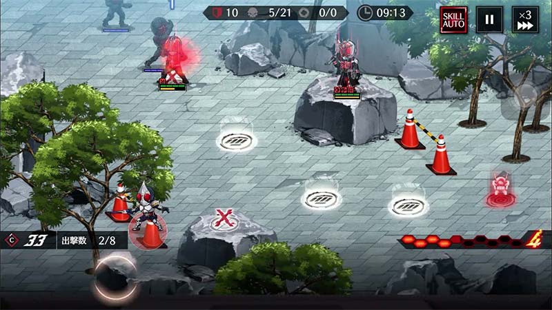 タワーディフェンス形式なので、敵の進行ルートを考えながらライダーを配置し、波状攻撃を防ぎ切ることが目標です。