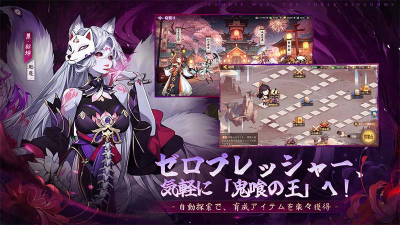 屍鬼がはびこる終末的な三国志世界を舞台に、プレイヤーは武将たちを率いて乱世を駆け抜けます。カードバトルとARPG的なオープンワールド探索が組み合わさった、これまでにない三国志ゲームです。