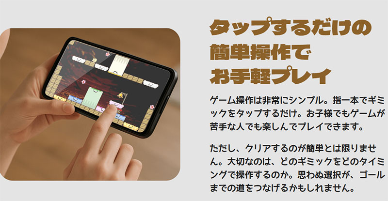 タップだけの簡単操作だから、ゲームが苦手な人やお子さんでも楽しめるよ!