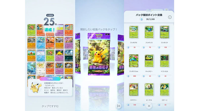 ポケポケの最大の魅力は、拡張パックを毎日2パック無料で開封できること。