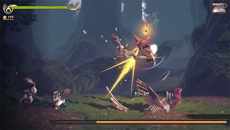 羽衣を使った縦横無尽な移動、多彩な武技、敵を投げ飛ばす豪快な攻撃など、爽快感のあるバトルが楽しめます。