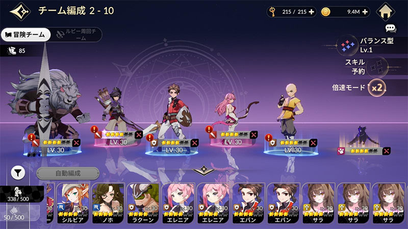 セナリバのバトルは「完成型ターン制バトル」と呼ばれるシステムを採用。自分だけの戦略でチームを編成し、スキルの発動順を設定しておけば、戦闘中に複雑な操作は一切不要です。