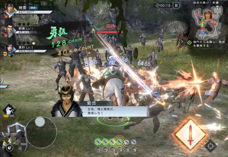 画面をタップするだけで、武将たちが華麗に敵をなぎ倒していきます。必殺技「無双乱舞」を発動すれば、画面中の敵を一掃する爽快感が味わえます。