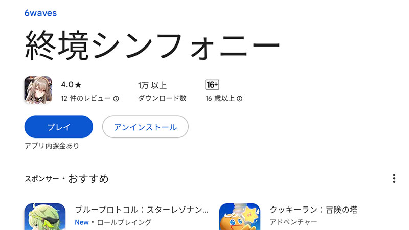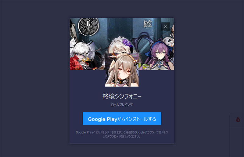 Googleアカウントのサインインができたら、次は「終境シンフォニー」のダウンロードに進みます。