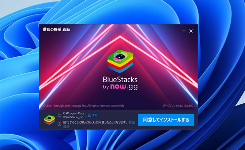 ダウンロードしたファイルからBlueStacks版をPCにインストールしましょう。