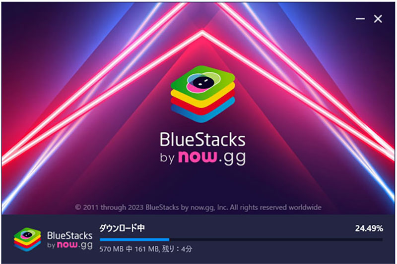 ダウンロードした「BlueStacks10」ファイルをダブルクリックして、セットアップを始めます。