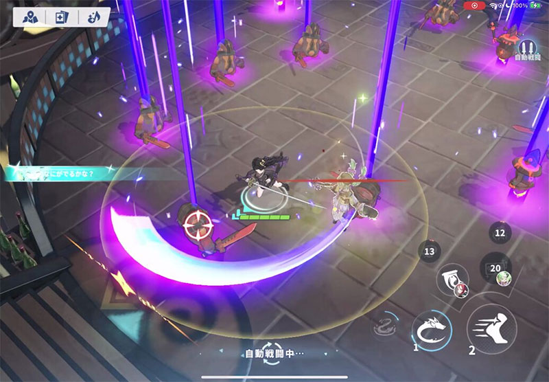 特に嬉しいのは、PCだとバトル中の画面が見やすくなること。スマホ版では操作用のスティックやボタンが邪魔になりがちですが、PC版ならそれらが画面端に小さくまとまるので、敵の攻撃も見逃しにくくなります。