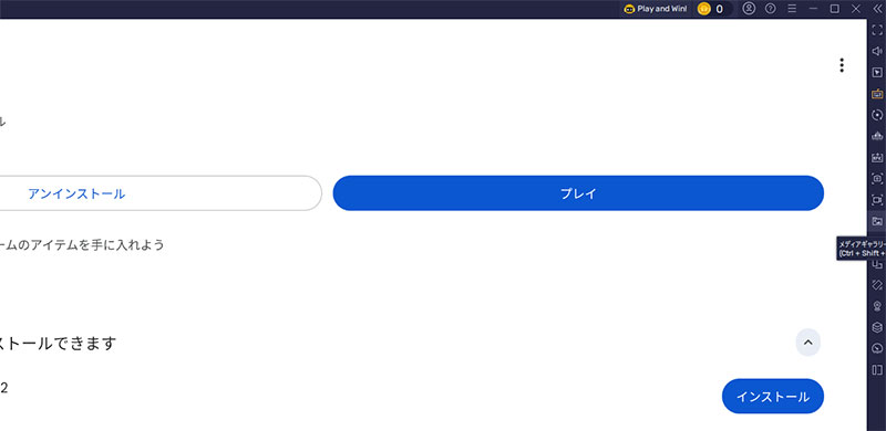 この画面がBlueStacksのプレイヤー画面です。ここからゲームをダウンロードしたりプレイしたりできます。